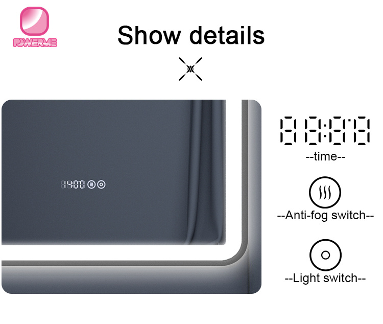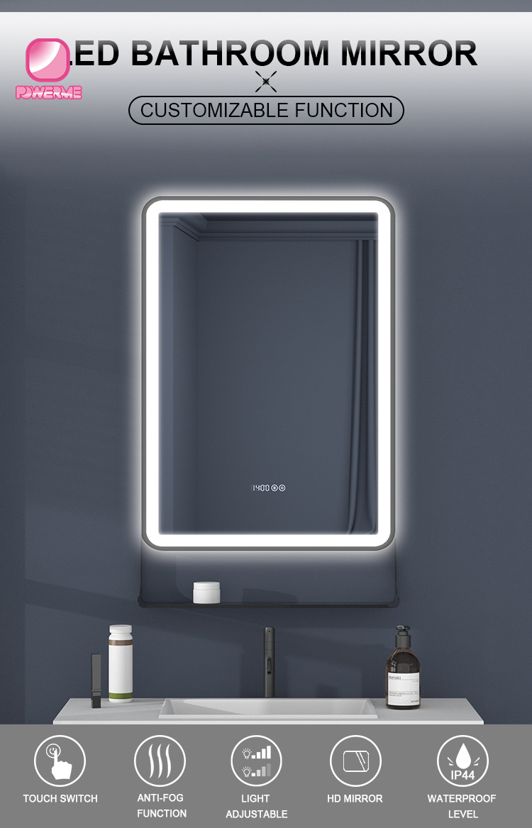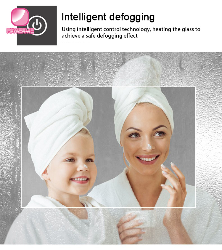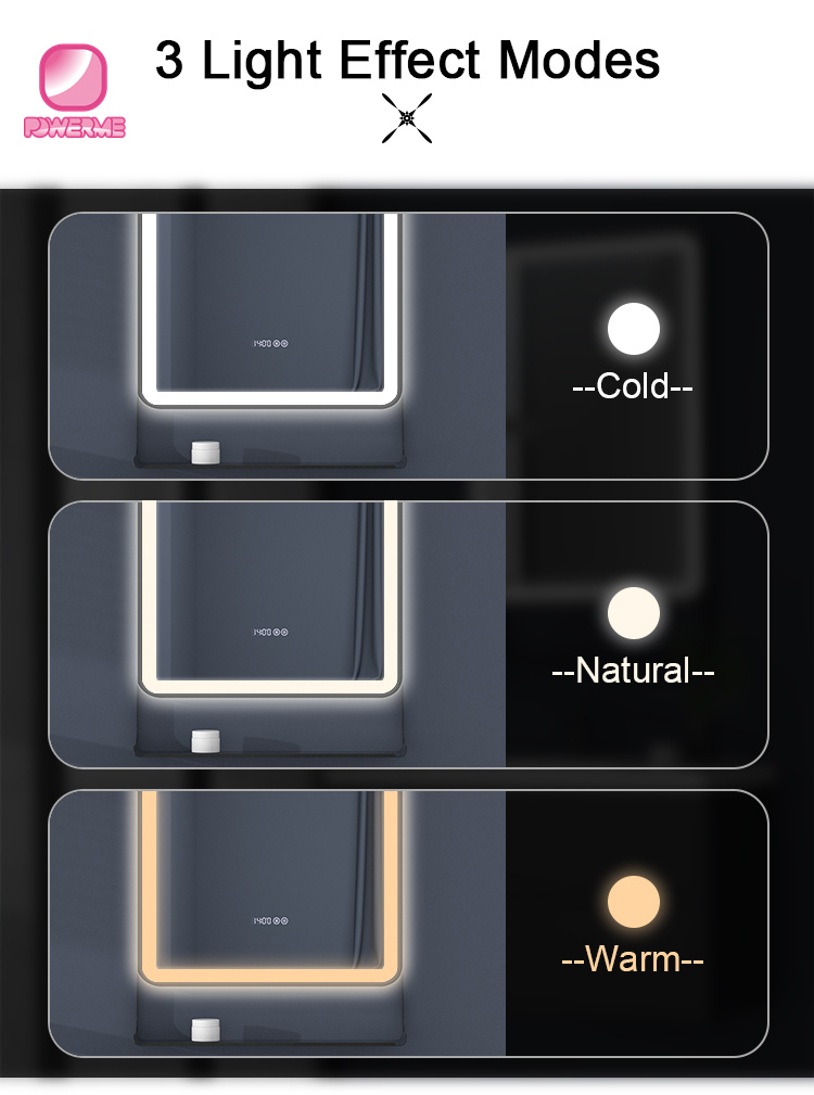 You Location:Home ? Products ? Smart Bathroom mirror ? PM-E100 LED Lighted Bathroom Mirror 3 Color lighting Dimmable