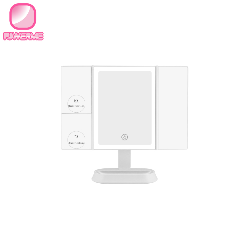 BM-1903三折LED智能化妝鏡 3/5/7倍放大鏡面 方形折疊化妝鏡